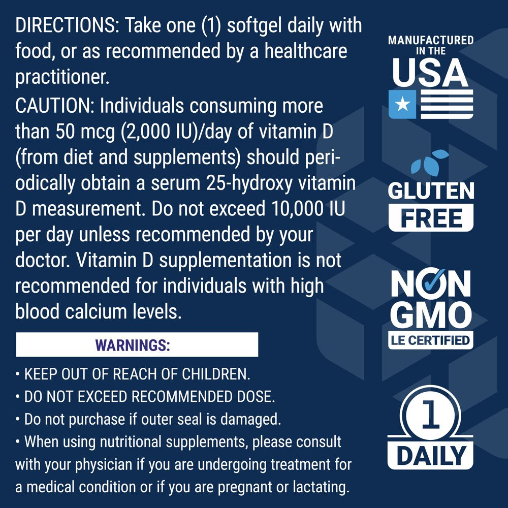 Vitamin D, aka “the sunshine vitamin” is a whole-body health superstar. Not only does it support a robust immune response and bone health, but vitamin D is also crucial for maintaining cognitive performance, supporting heart health (including maintaining your healthy blood pressure levels) and so much more. But many of us don’t get enough D3 from sunshine and diet alone (and sunshine shouldn’t be the source of vitamin D). That’s where a high-potency vitamin D3 supplement comes in, providing you with enough D3 levels for whole-body wellness. This potent D3 vitamin supplement delivers 175 mcg of vitamin D—it’s ideal to help your body reach optimal vitamin D3 levels
