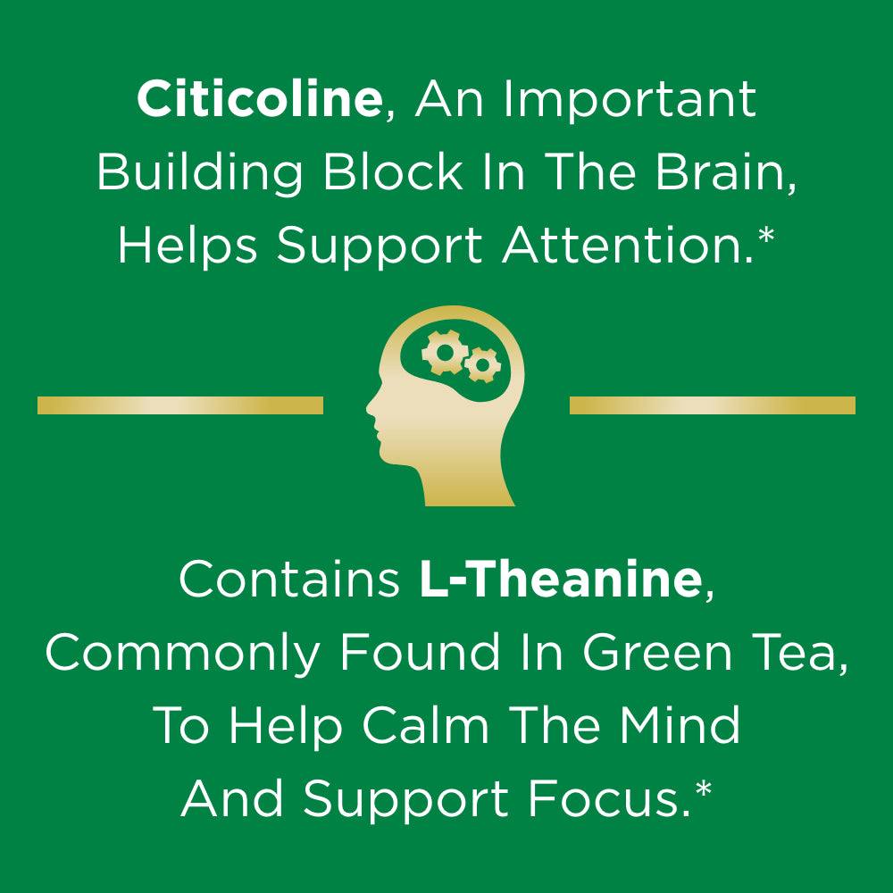 - Brain support supplement features Cognizin citicoline ** to help support attention*