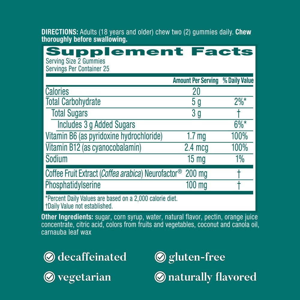 - NOOTROPIC BRAIN HEALTH SUPPORT GUMMIES: Clinical studies have shown that coffee cherry (Neurofactor) and plant-sourced Phosphatidylserine have a positive effect on brain health.*
