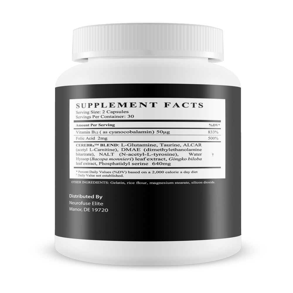 Neurofuse Elite Powerful Focus & Memory Nootropic Pill - Formula Helps Support Memory, Cognitive Function, Focus & Clarity - Reduce Brain Fog & Fatigue - 60 Count
