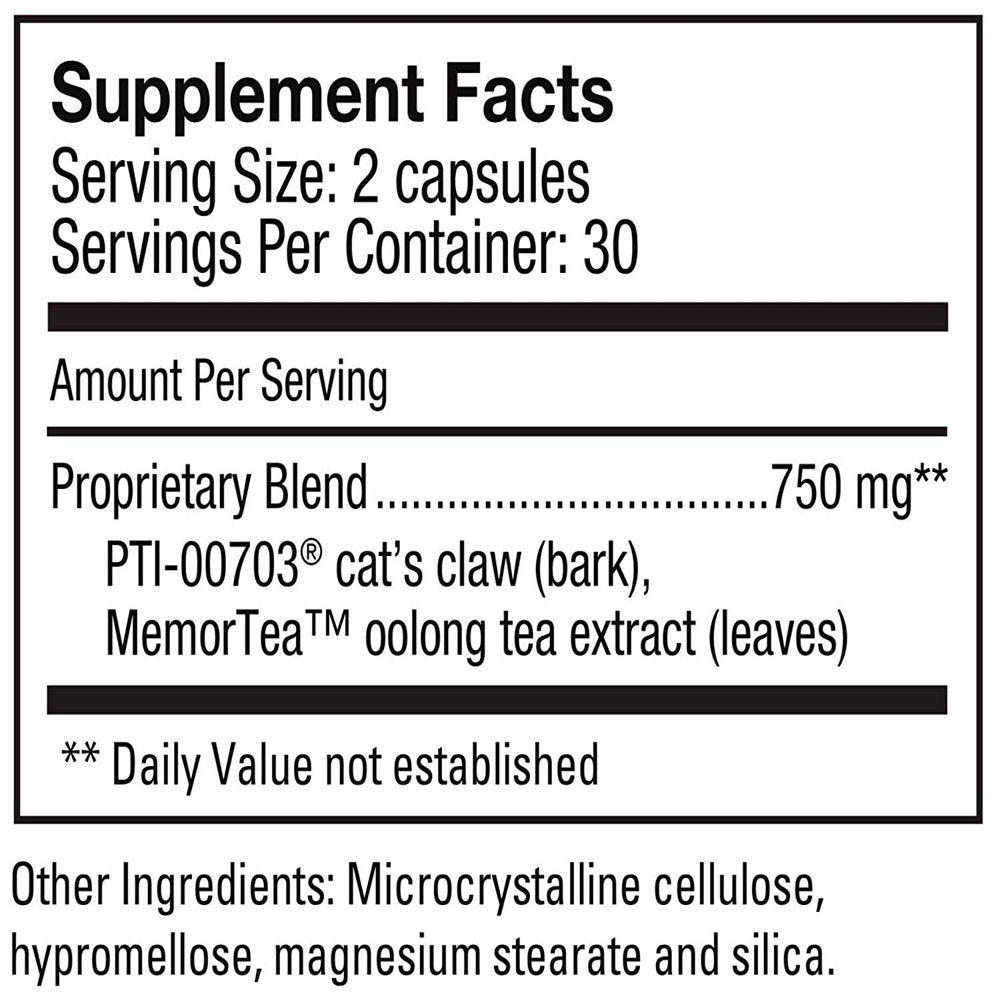 Proprietary Blend .....750 mg (2 capsules) PTI-00703® cat's claw (bark), MemoTea® oolong tea extract (leaves)/div>