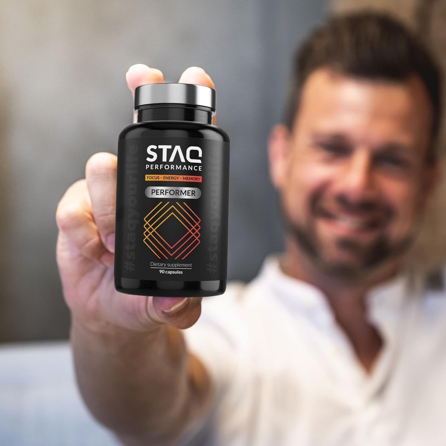 - ?FOCUS, ENERGY, MEMORY – STAQ Performer is the first brain supplement using 11 ingredients that help you get more focused, regain childhood energy and improve your memory.