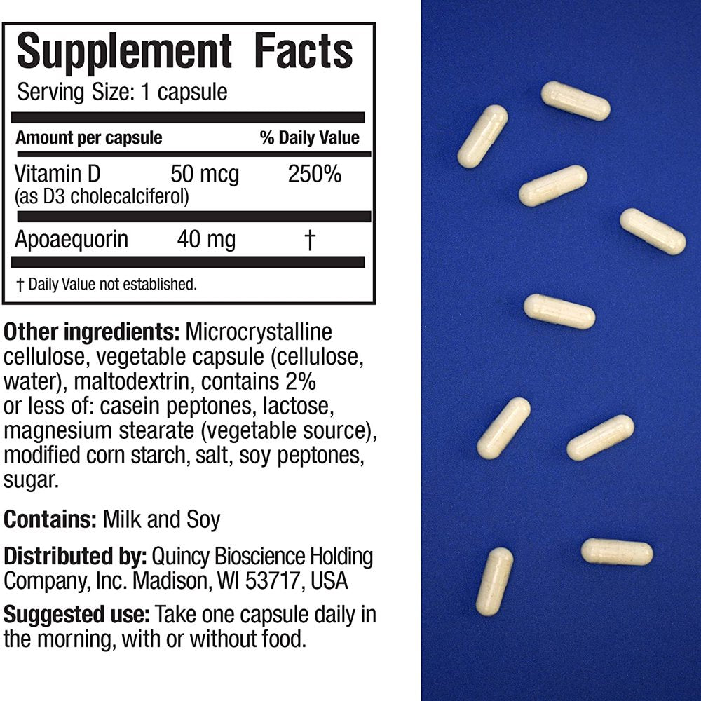 Vitamin D, Apoaequorin, microcrystalline cellulose, vegetable capsule (cellulose, water), maltodextrin, contains 2% or less of: casein peptones, lactose, magnesium stearate (vegetable source), modified corn starch, salt, soy peptones, sugar/div>