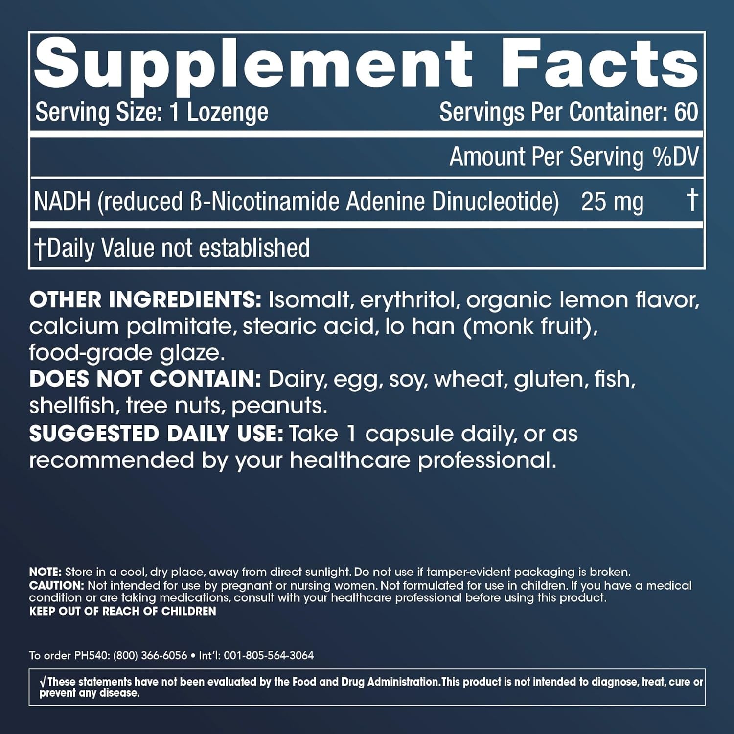 Lozenges significantly enhance NADH bioavailability and allow the supplement to be absorbed into the blood vessels underneath the tongue. The NADH also avoids digestion in the gastrointestinal tract and can be more rapidly delivered to the bloodstream.