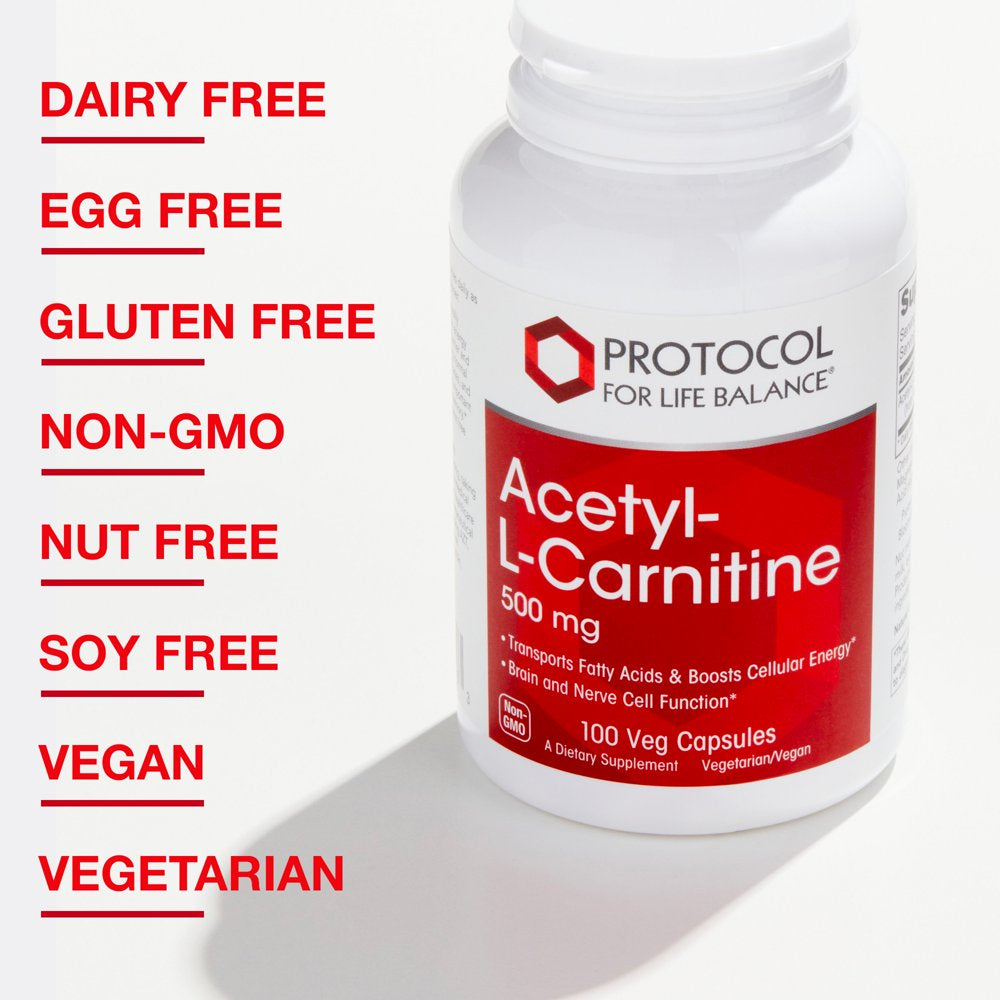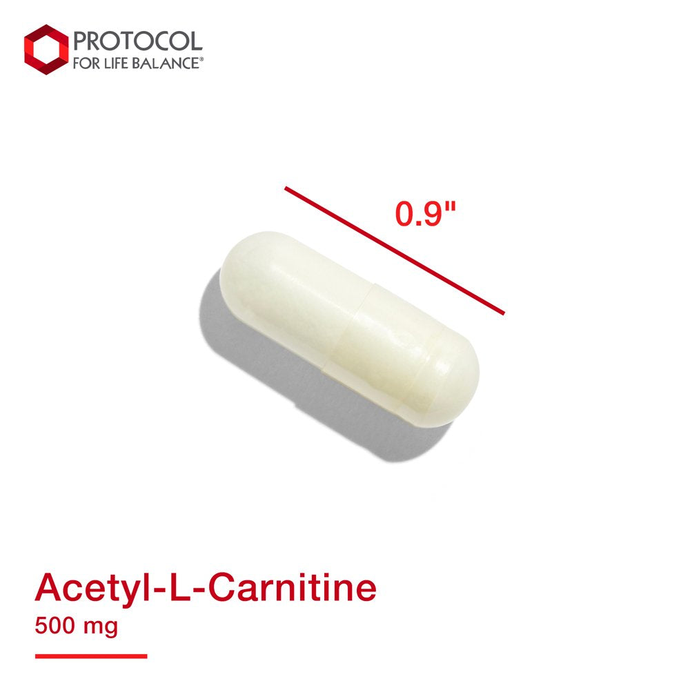 Protocol for Life Balance - Acetyl-L-Carnitine 500 Mg - Helps Transport Fatty Acids, Reduce Unwanted Fat, Boosts Energy, Cognitive Brain Support, Enhances Performance and Recovery - 100 Veg Capsules