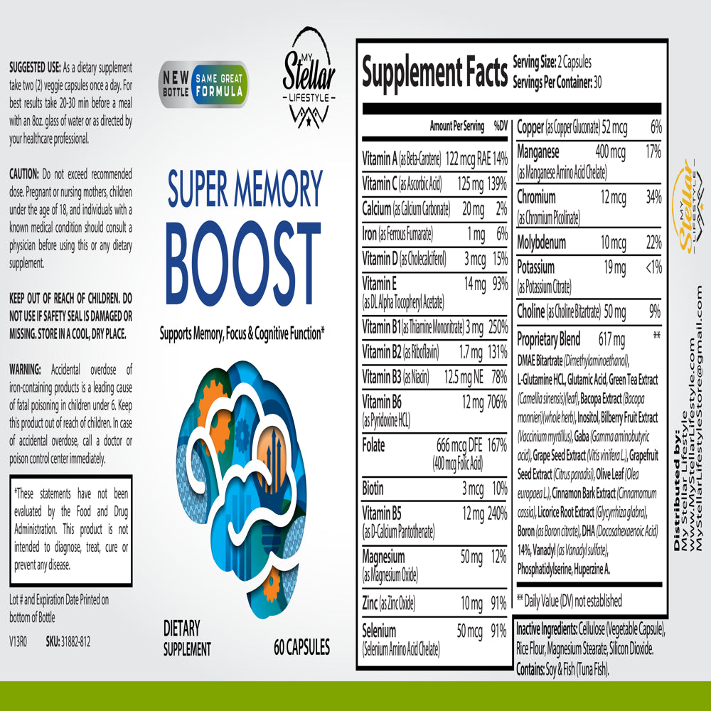 Super Memory Boost, supports memory, focus & cognitive function-60 Capsules