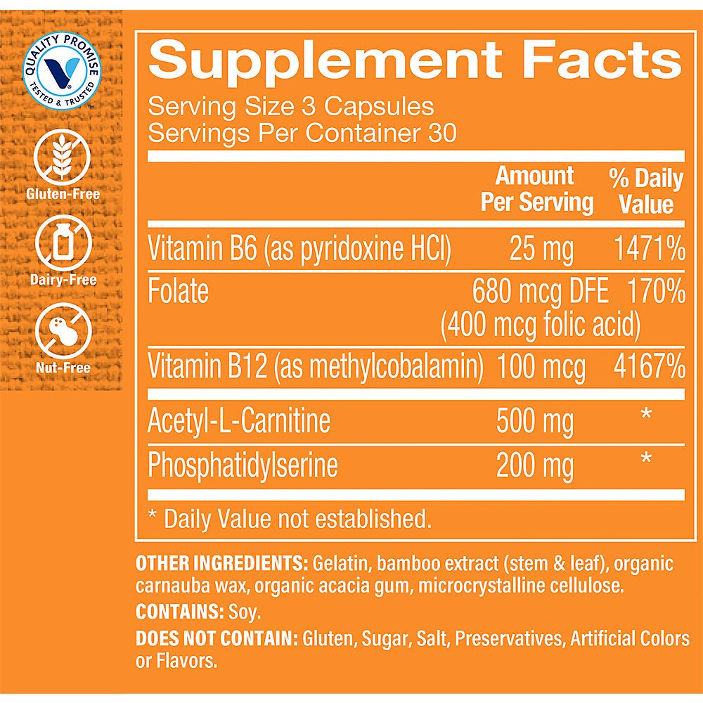 The Vitamin Shoppe Brain Sharp with Acetyl-L-Carnitine, Phosphatidylserine & B Vitamins for Memory, Focus, Energy Production (90 Capsules)