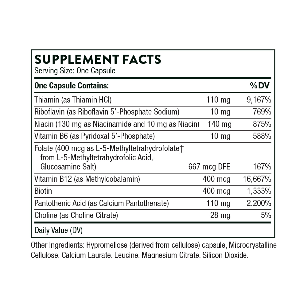 Thorne Basic B-Complex, Tissue-Ready Vitamin B Complex Supplement with Choline, Supports Cellular Energy Production, Brain Health & Red Blood Cell Formation, Gluten-Free, Dairy-Free, 60 Capsules
