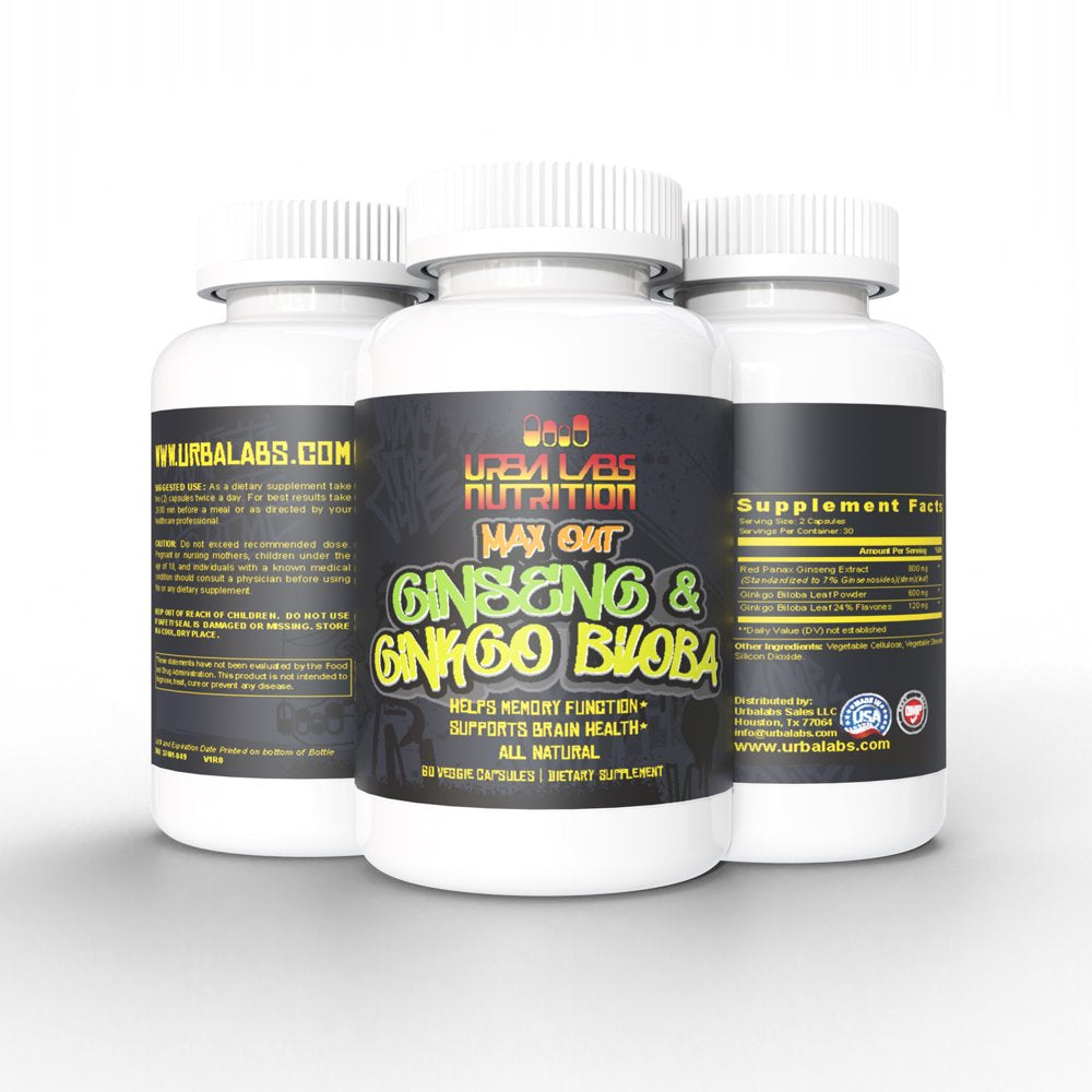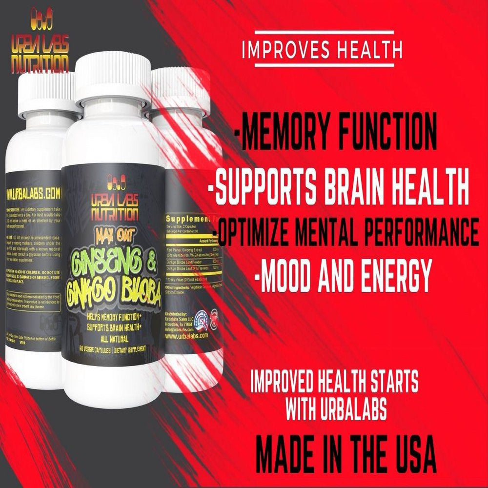 - Memory: Urbalabs Max Out Ginseng & Ginkgo Biloba Focus Supplement is your go-to memory booster. The powerful combination of ginseng and ginkgo biloba supports memory recall, retention, and overall cognitive function. Whether you're studying for an exam, working on a project, or simply want to maintain a sharp mind as you age, this supplement has got you covered. Elevate your mental capabilities and unlock your full cognitive potential with this mood-boosting, memory-enhancing super nootropic.