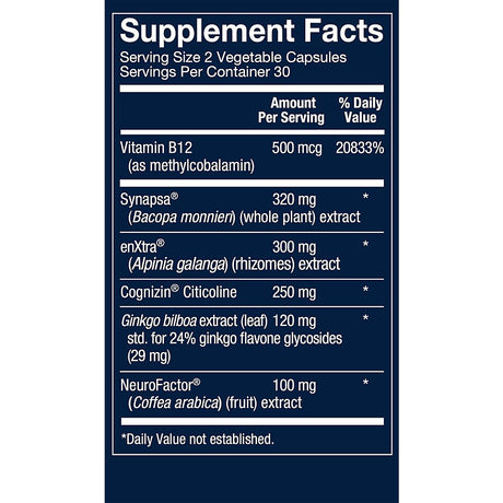 Advanced Nootropic Formula - Supports Cognitive Health & Brain Function (60 Vegetarian Capsules)