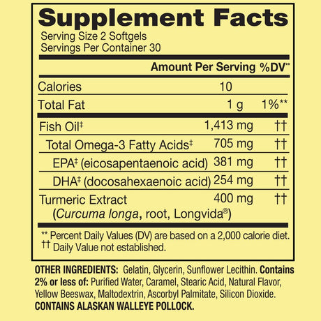 Spring Valley Omega-3 Fish Oil Brain & Heart Health Dietary Supplement Softgels, 2000 Mg, 180 Count