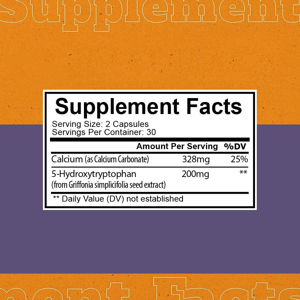 5-HTP 200Mg with Calcium - Naturally Supports Serotonin Levels to Promote Better Rest, and a More Positive Mood - Plant-Based & Derived from Griffonia Extract