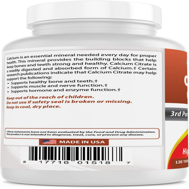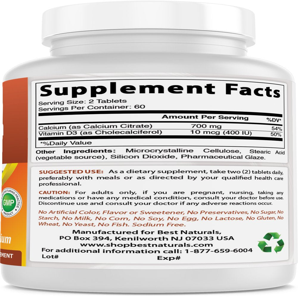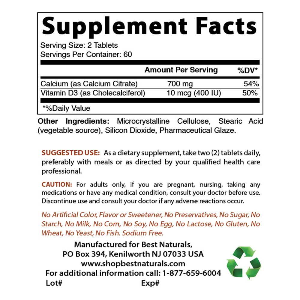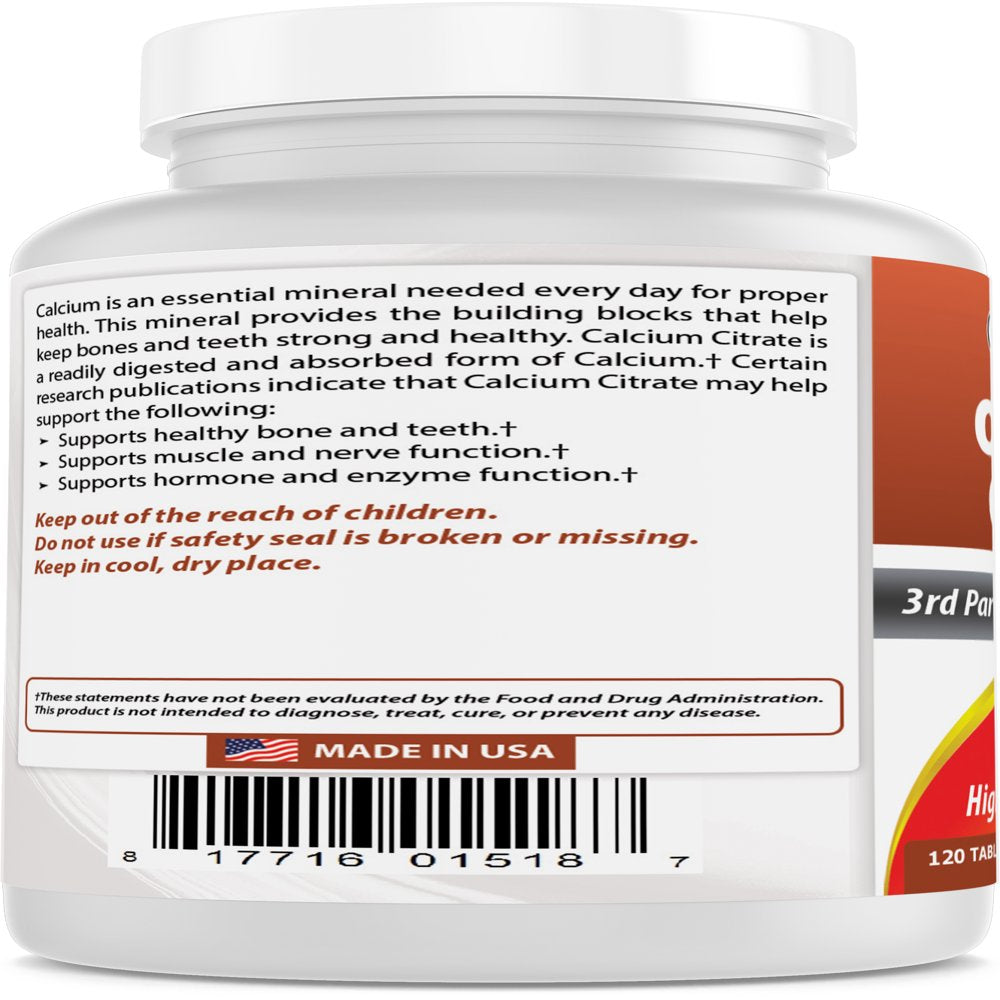 Best Naturals Calcium Citrate with Vitamin D-3 120 Tablets