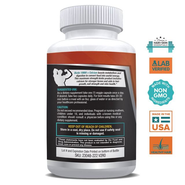 - GETTING THE MOST OUT OF BIOTIN – One crucial aspect to getting the most out of biotin for hair health is first ingesting quality foods. It’s also crucial to experience low levels of stress and receive proper hair care. This along with the biotin dosage in Biotin 10000 + Calcium helps support hair growth at its best rate.
