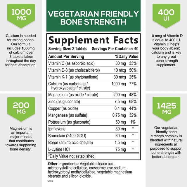 - Bone Supplement calcium Complex Tablets for Women and Men: 1000mg of carbonate hydroxyapatite mcha and citrate made with magnesium boron d d3 k over 1200 mg of minerals calcio based not chewable capsules or chews no strontium chloride gluten free and non gmo growth joint health support marrow osteo density support natures nutrition new plant plus powder strength supplement tabs up vitamins