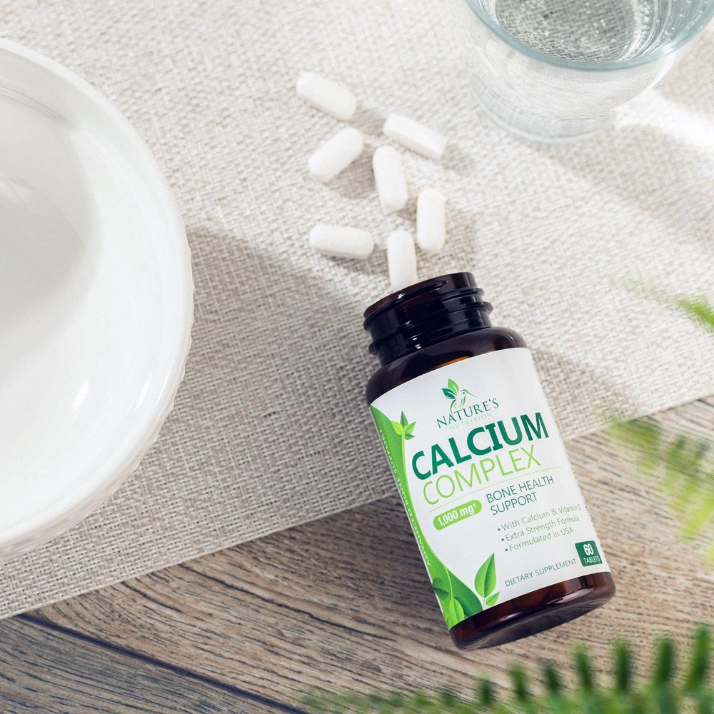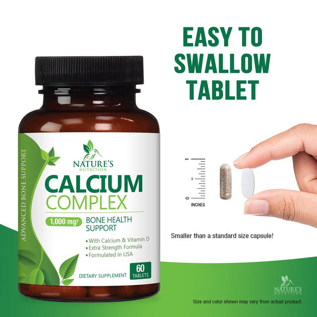 Calcium Supplement - 3x Calcium Plus Vitamin D3 & Magnesium for Bone Health & Immune Support - Vitamins C & D, Gluten Free Calcium Bone Strength Tablets by Nature's Nutrition