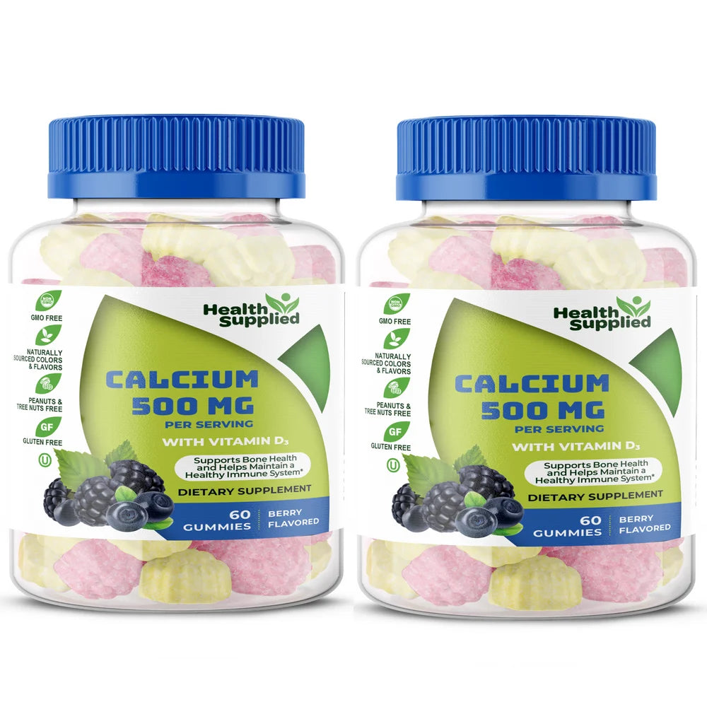 - 2 MONTH SUPPLY - 500MG PER SERVING: This package contains 120 gummies. Each serving consists of 2 gummies, equaling 60 servings. Each serving has 500 mg calcium and 25 mcg vitamin D 1000 IU. High levels of vitamin D3 in these bone health supplements help maximize calcium absorption and maintain healthy bones.