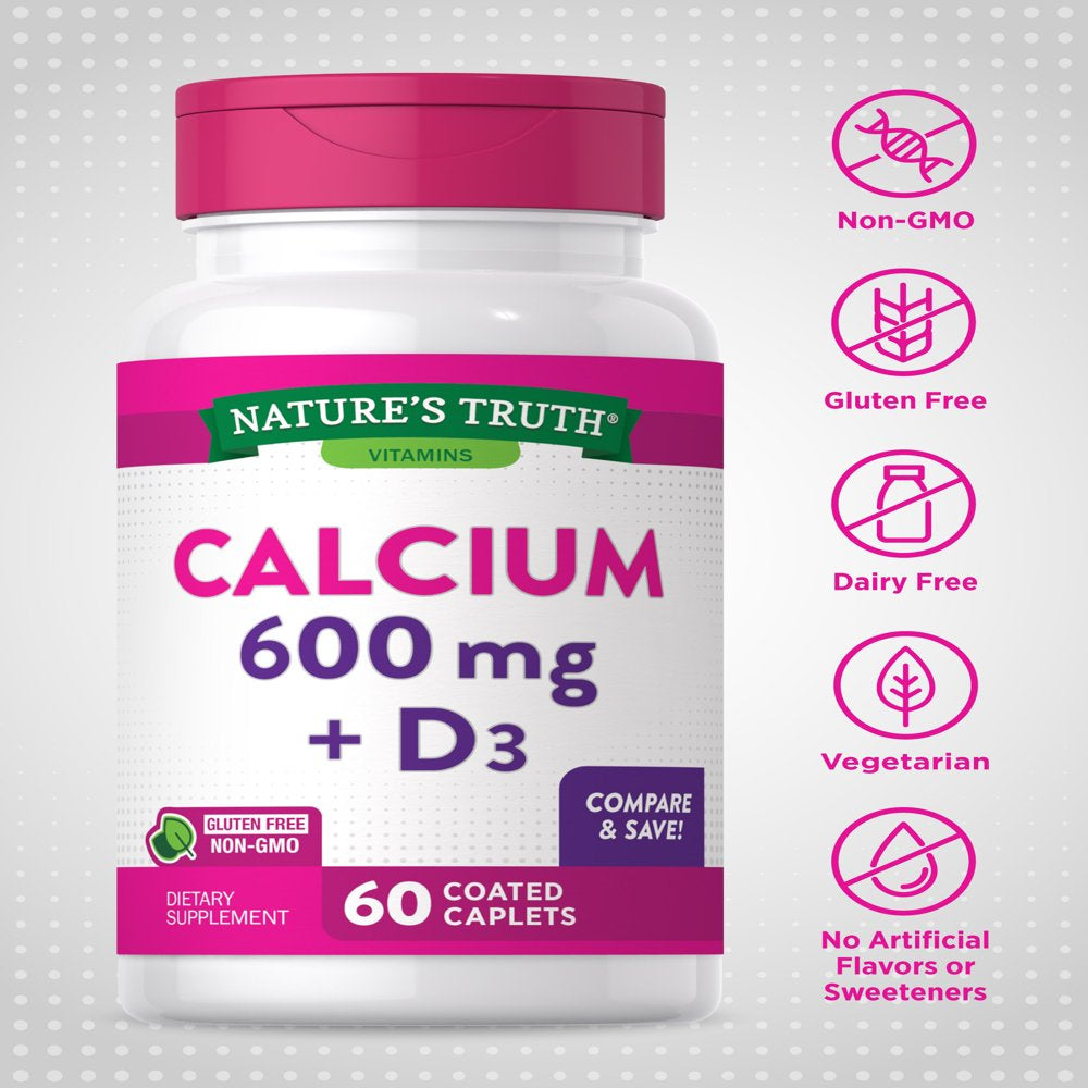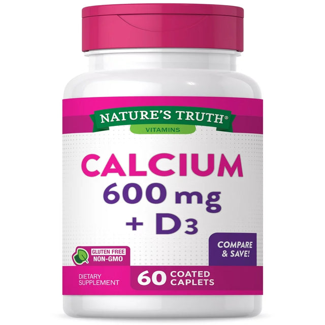 Calcium 600Mg with Vitamin D3 | 60 Tablets | Calcium Carbonate Supplement | Vegetarian, Non-Gmo, Gluten Free | Nature'S Truth