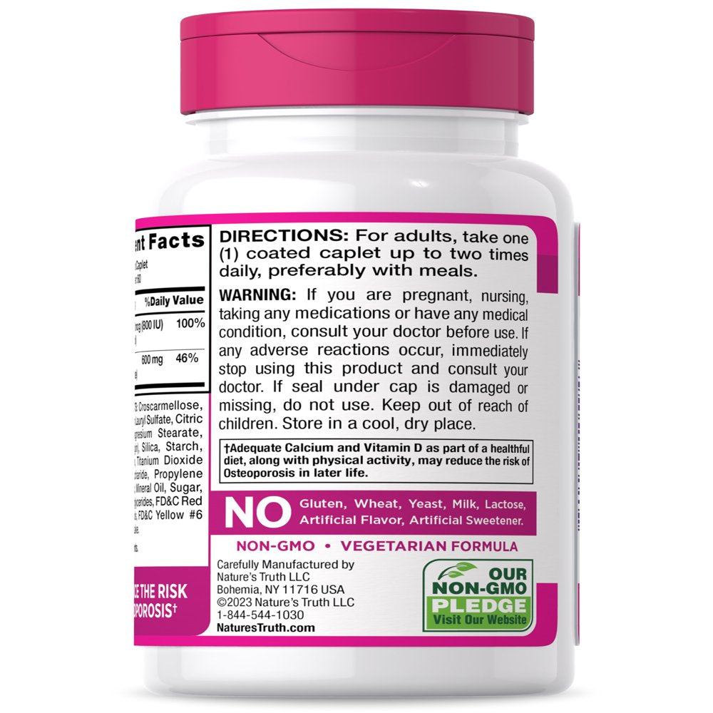 - CALCIUM CAPLETS: 600 mg of Calcium + 20 mcg (800 IU) of Vitamin D3 per serving