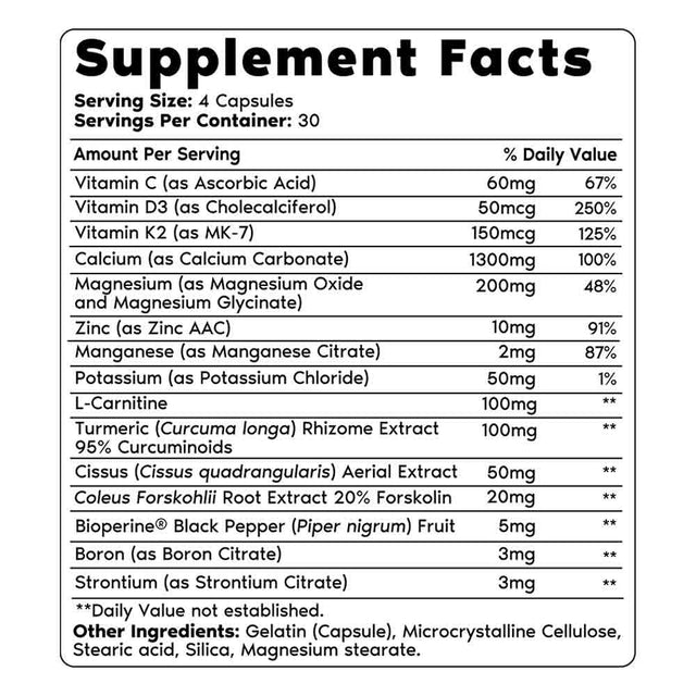 - Bone and Joint Vitamins: Vitamin D3, Calcium Carbonate, and Vitamin K2 are crucial co-factors that help your body to absorb and use calcium properly.