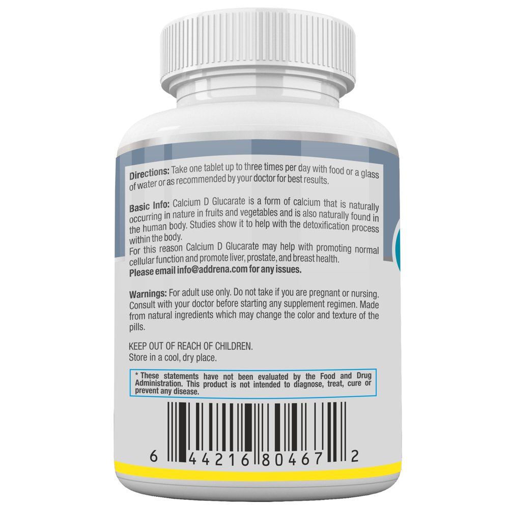 Calcium D- Glucarate is a form of calcium that is naturally occurring in nature in fruits and vegetables and is also naturally found in the human body. Studies show it to help with the detoxification process within the body. For this reason, Calcium D- Glucarate may help with promoting normal cellular function and promote liver, prostate, and breast health. Addrena Calcium D-Glucarate supplement tablets combines the benefits of calcium together with the advantages of Glucaric acid which is a compound that's naturally created in the human body and is found in several types of produce.