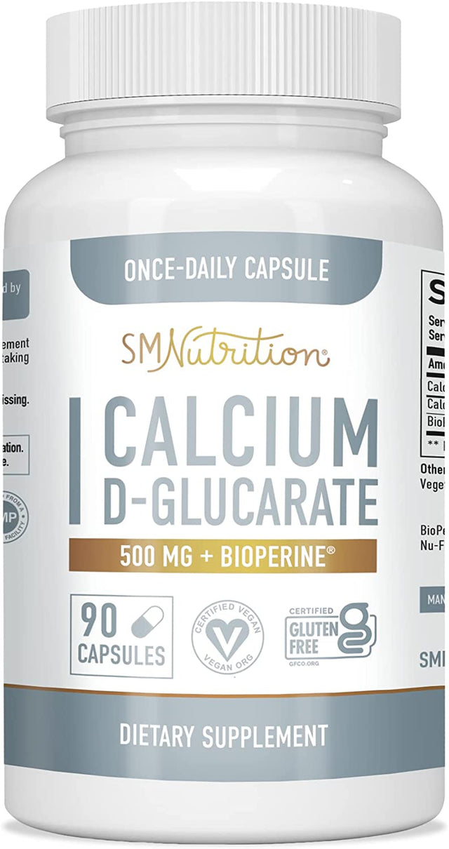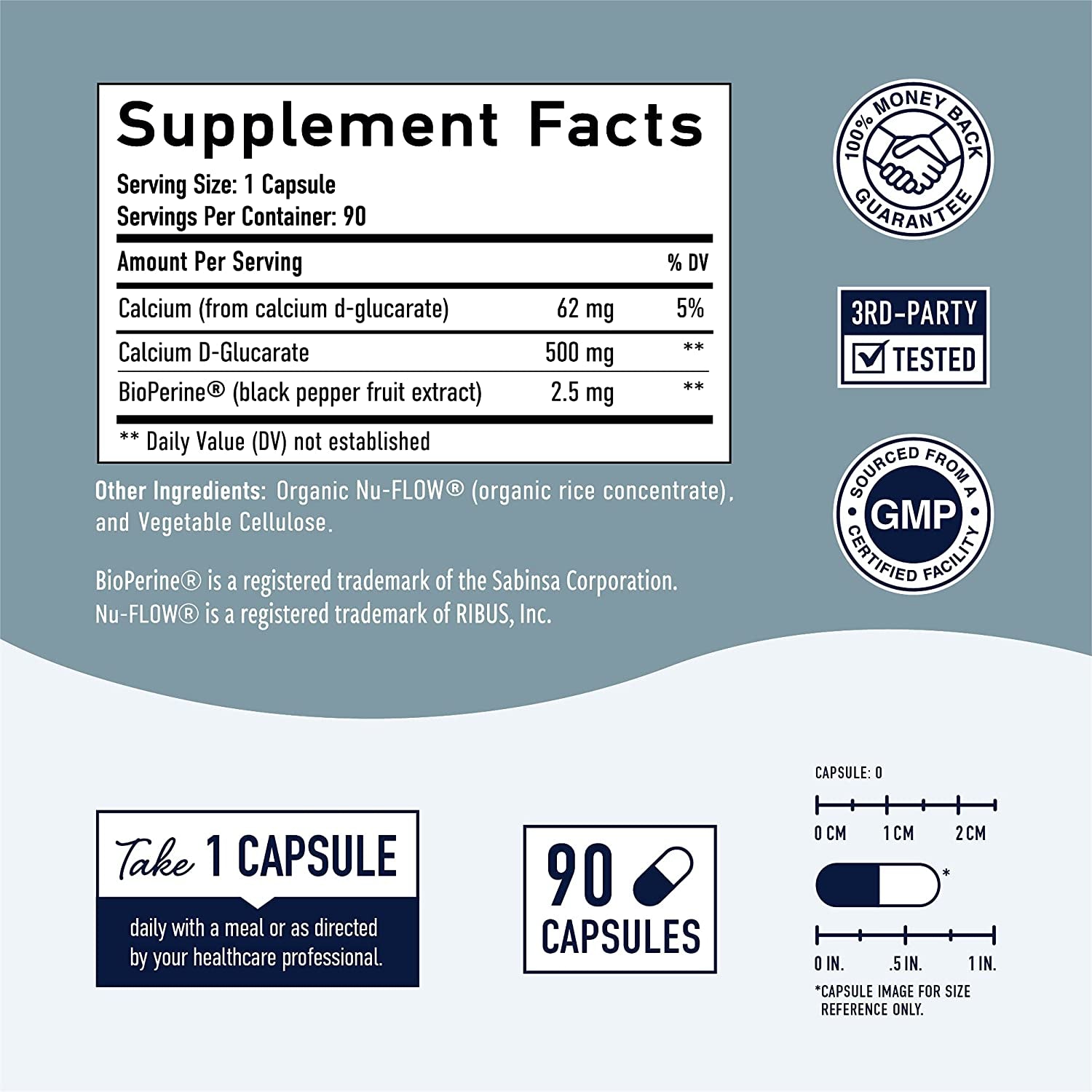 Calcium D-Glucarate | 500Mg | CDG for Liver Detox & Cleanse, Metabolism, Hormone Balance, & Menopause Support* | Vegan.Org Certified, Non-Gmo, Gluten-Free Calcium D Glucarate | 90 Ct. (3-Month Supply)