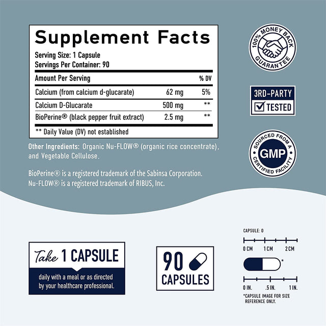 Calcium D-Glucarate | 500Mg | CDG for Liver Detox & Cleanse, Metabolism, Hormone Balance, & Menopause Support* | Vegan.Org Certified, Non-Gmo, Gluten-Free Calcium D Glucarate | 90 Ct. (3-Month Supply) - Cdg Capsule is backordered and will ship as soon as it is back in stock.