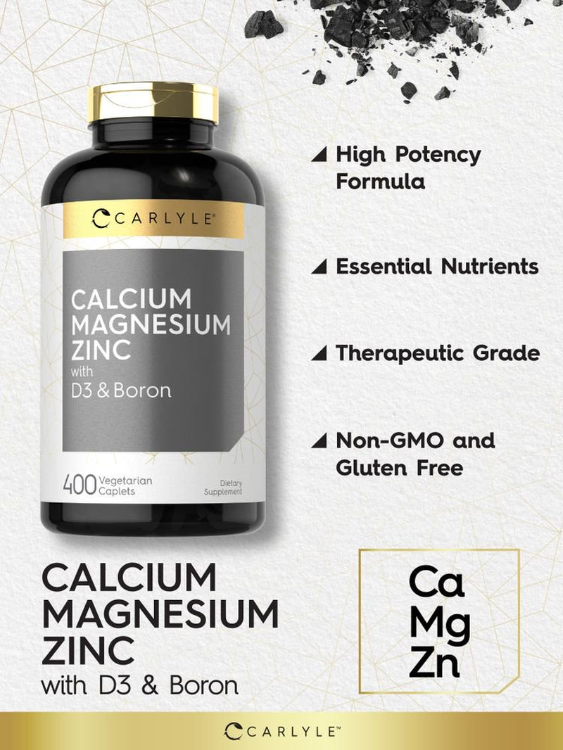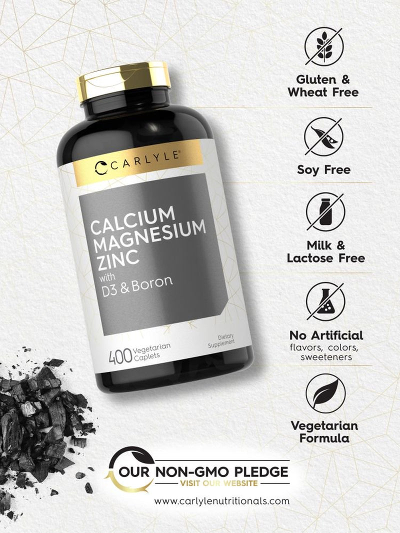 Calcium Magnesium Zinc | 400 Caplets | Vegetarian Formula | by Carlyle