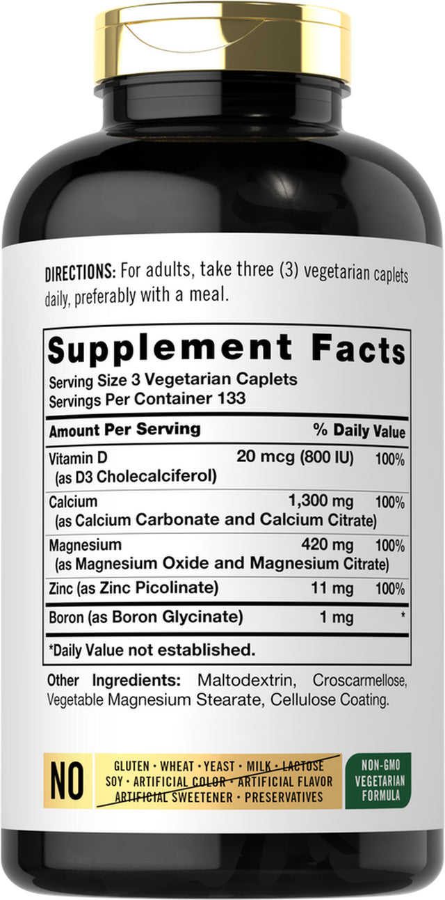 Carlyle Calcium Magnesium Zinc is a powerful source of these three major minerals, supplying 1,300 mg of Calcium, 420 mg of Magnesium, and 11 mg of Zinc per serving in one premium, mineral blend. Vegetarian caplets provide superior nutritional support, making this gluten-free and non-GMO formula a top choice for men and women everywhere.