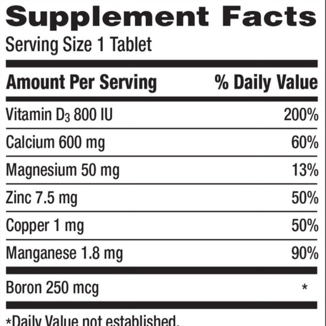 - Contains 600 mg. of Calcium, 800 IU of Vitamin D₃