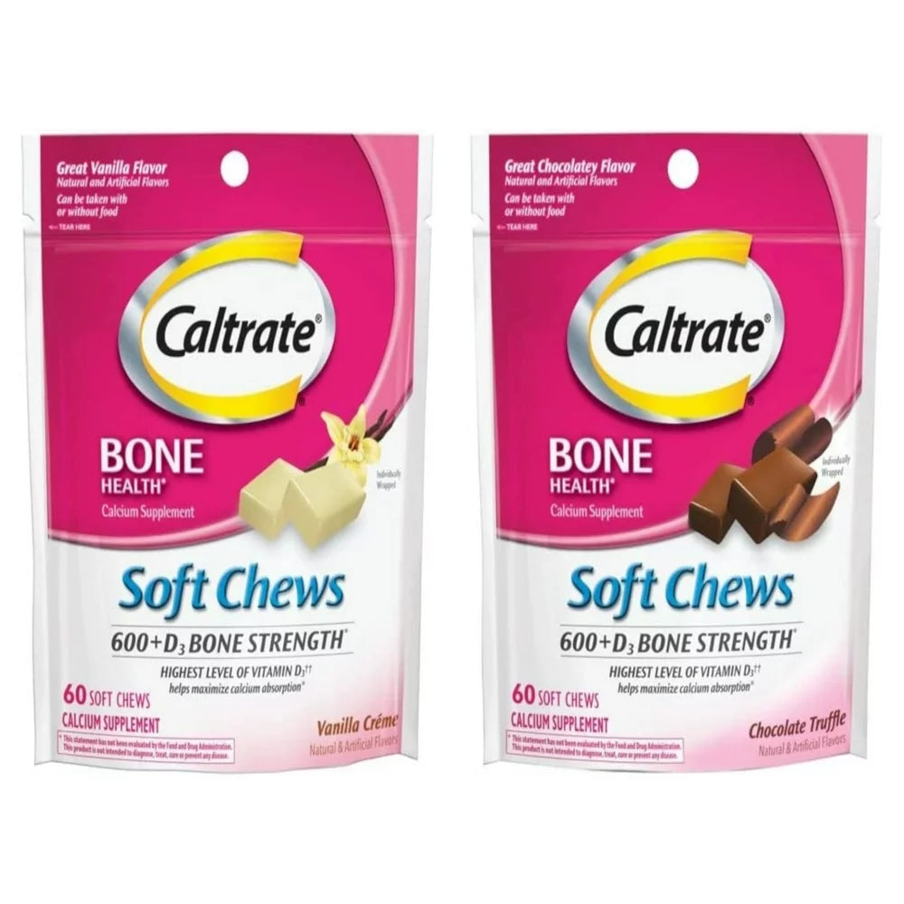 Caltrate Calcium Vitamin D Soft Chew, Vanilla Crme & Choclate Truffle Pack, 120 Count Each