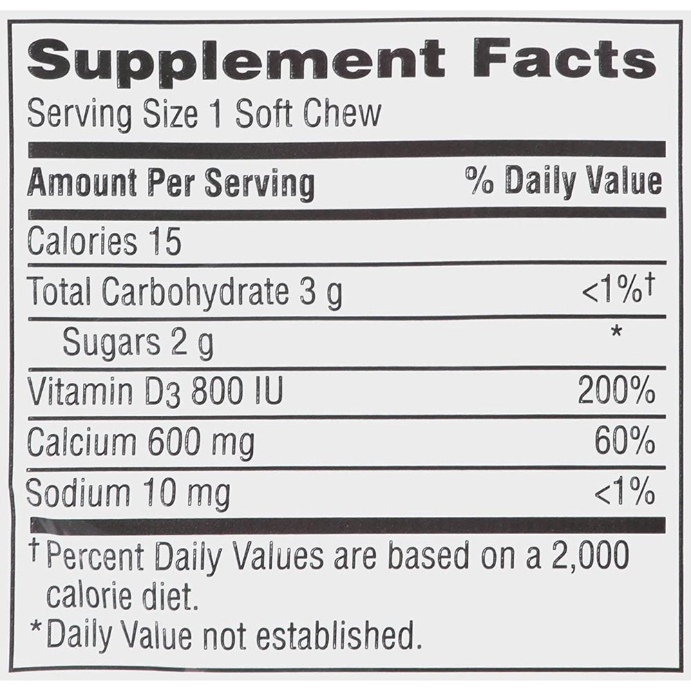 - Contains 60 calcium soft chews in vanilla flavor.