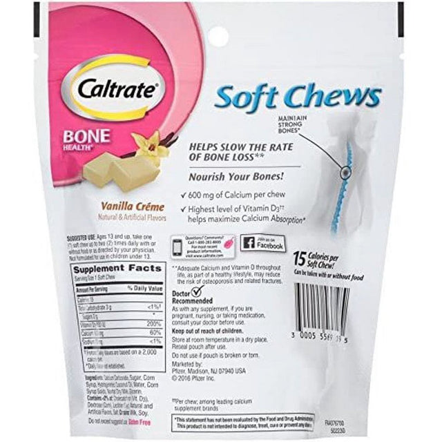 Caltrate Calcium - Vitamin D Soft Chews Vanilla Creme 60 Each is backordered and will ship as soon as it is back in stock.