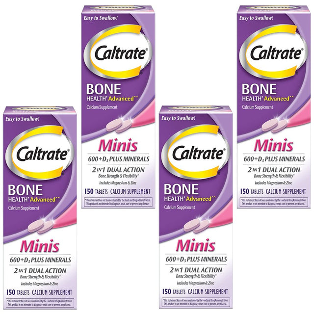 Caltrate Calcium & Vitamin D3 Supplement plus Minerals Mini Tablets, 150 Ea (Pack of 4)