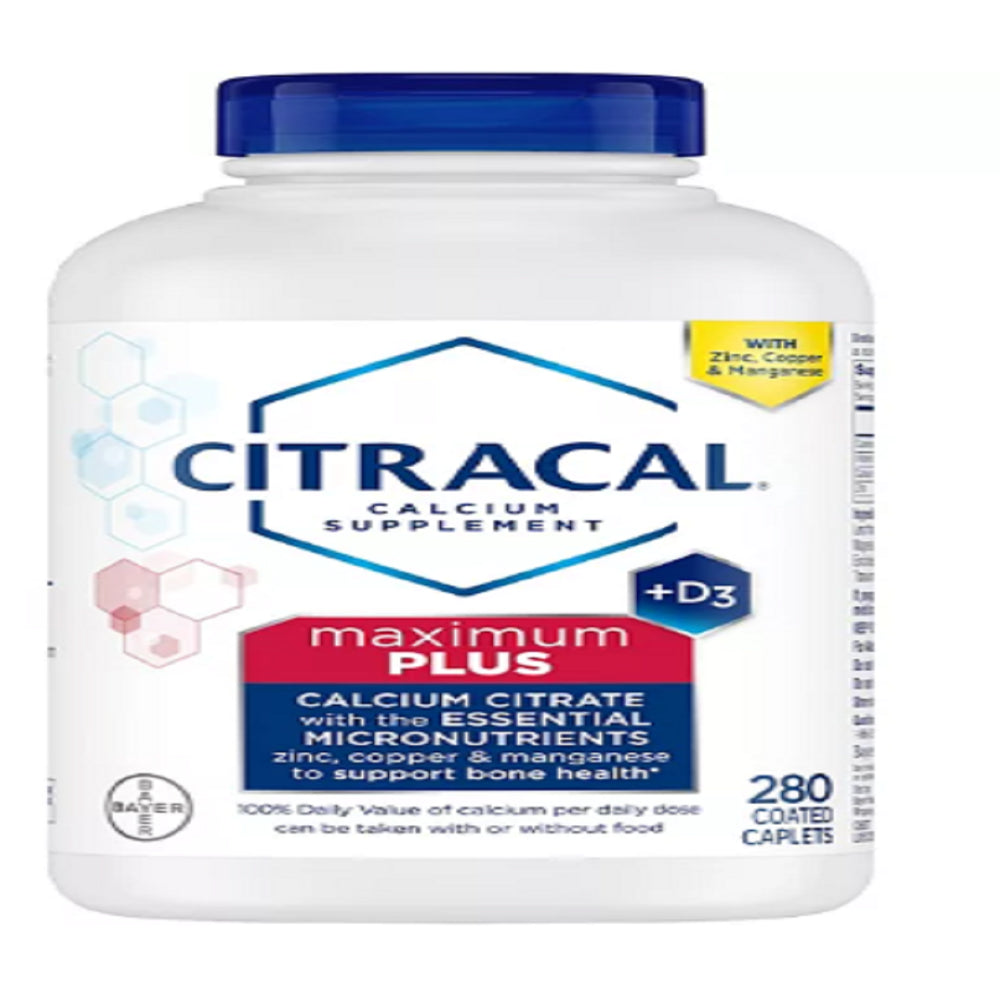 Citracal Calcium Citrate Caplets + D3 (280 ct.) Key Features -Take 1 serving (2 caplets) twice daily with or without food -Vitamin D: 1000 IU per serving, 125% Daily Value -Calcium: 630 mg per serving, 63% Daily Value Product Details: -#1 doctor-recommended calcium brand -Can be taken with or without food -Calcium citrate is easily absorbed by your body -Gentle on digestive system -Essential micronutrients to support bone health* -Contains zinc, copper and manganese -Easily absorbed -Gentle on your digestive system -Can be taken with or without food -For men and women
