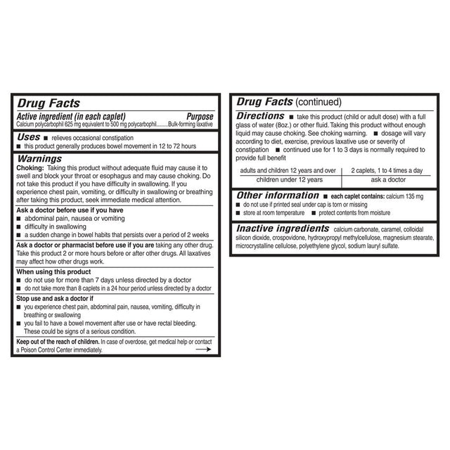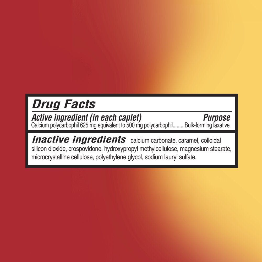 • Active ingredients: calcium polycarbophil 625mg equivalent to 500 mg polycarbophil bulk-forming laxative