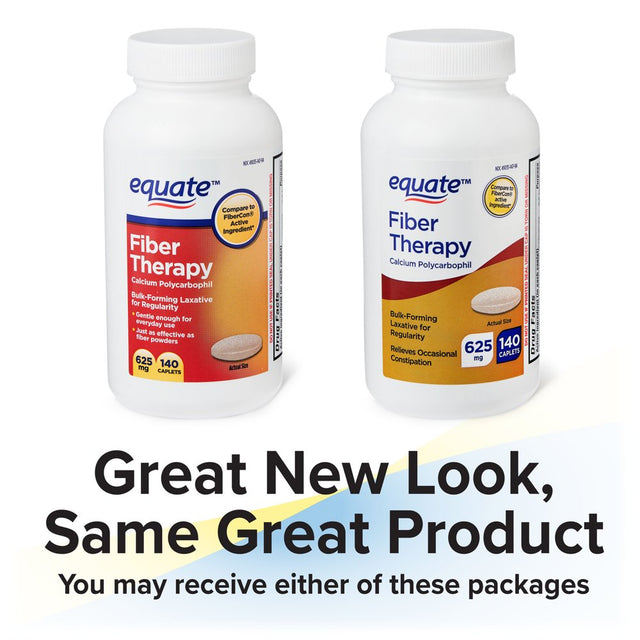 Get a slow or backed up digestive system moving again with Equate Fiber Therapy Caplets. A bulk-forming laxative for regularity, these are gentle enough for everyday use and just as effective as fiber powders. Use this 140 count bottle Equate fiber therapy calcium polycarbophil caplets to relieve occasional constipation. They will generally produce a bowel movement within 12 to 72 hours. Keep the digestive system moving and healthy with this 625mg fiber supplement. This product should be taken with a full 8 oz glass of water or other fluid to be fully effective. Continue usage of these Equate Fiber Therapy Caplets for at up to three days for full benefits.