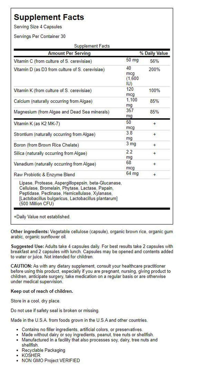 Made with individually grown nutrients utilizing probiotic cultivation to produce RAW Food-Created Nutrients?, Vitamin Code supplements are delivered in a whole food base of fruits and vegetables. Vitamin Code supplements are RAW, which not only means that they are produced below 115º F, but also means that these nutrients come with their natural cofactors, along with live probiotics and enzymes, just like raw foods! Vitamin Code raw powders are delivered in capsules without any binders or fillers?everything you want and nothing you don?t want. Vitamin Code RAW Calcium is a whole food plant calcium formula with magnesium, vitamin D3 and K2 (MK-7). Vitamin Code RAW Calcium is clean, meaning no synthetic binders or fillers, artificial flavors, sweeteners, colors or additives commonly used in tablets. Whole food means RAW Food-Created Nutrients are blended in a base of 24 fruits and vegetables together with food cofactors and 73+ naturally occurring trace minerals. Plus, Vitamin Code RAW Calcium has 1,600IU of vitamin D3 to help your body utilize calcium efficiently, and 100mcg of vitamin K2 as MK-7 and magnesium to promote proper absorption of calcium in the bone, where you want it most.
