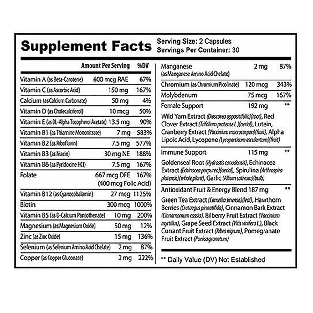 • FEMALE SUPPORT: Including Wild Yam Isoflavones and calcium for a woman’s unique needs.