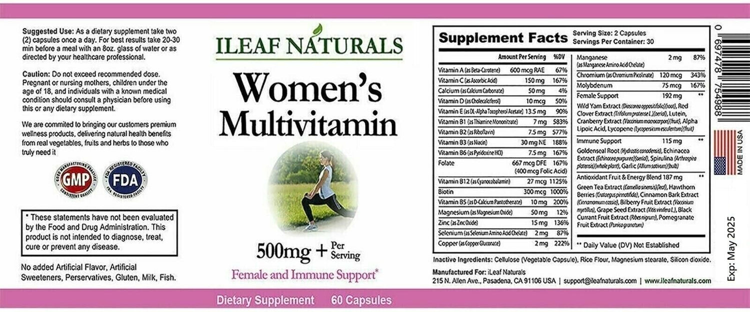 • 90 DAY GUARANTEE: We believe in our iLeaf Naturals Women's Multivitamin - 60 Veggie Capsules. However, as with most supplements results aren’t instant. We encourage you to take the daily dosage for a full 90 days, and if it doesn’t work as described simply send it back for a full refund.