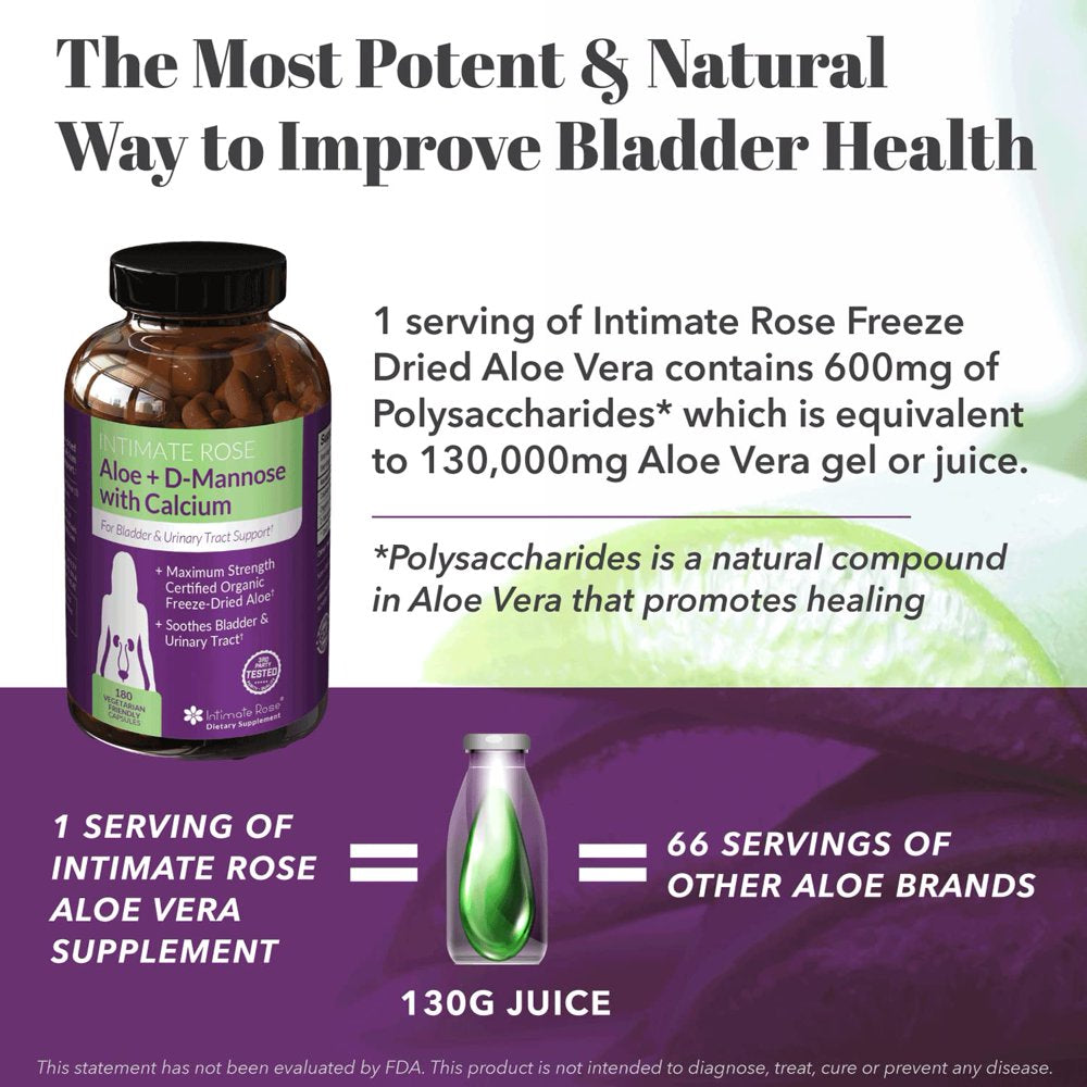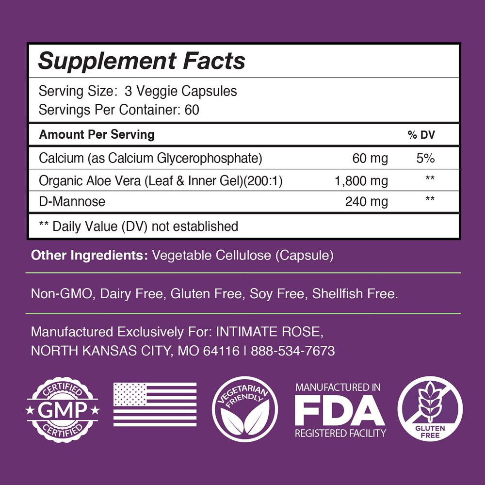 - TOTAL PELVIC HEALTH - A regular use of Intimate Rose Aloe Vera and D-Mannose capsules makes you less prone to bladder infections, urinary infection, and more. Our filler-free blend features the best ingredients to support your bladder and urinary tract health. It includes D-mannose to attract and hold certain types of bacteria so they may be naturally eliminated.