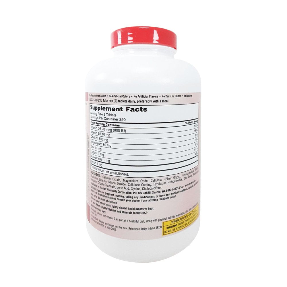 Your Complete Calcium Formula Get the benefits of three essential minerals and Vitamin D3 working together to support bone health.† Learn More about Kirkland Signature™ Calcium Citrate Click "View More Details" below. Kirkland Signature Calcium Citrate, Magnesium & Zinc is formulated for building a healthy body.† Calcium is essential for strong bones and Vitamin D3 helps the body absorb calcium.† Zinc and Magnesium assist the body with bone formation.† Helps maintain healthy bones and teeth.† Supports healthy muscle contraction.† Reduces risk of osteoporosis.◊ Calcium Citrate - 500 mg Magnesium – 80 mg Vitamin D3 – 20 mcg (800 IU) Zinc – 10 mg Kirkland Signature Calcium Citrate Magnesium and Zinc, 500 Tablets