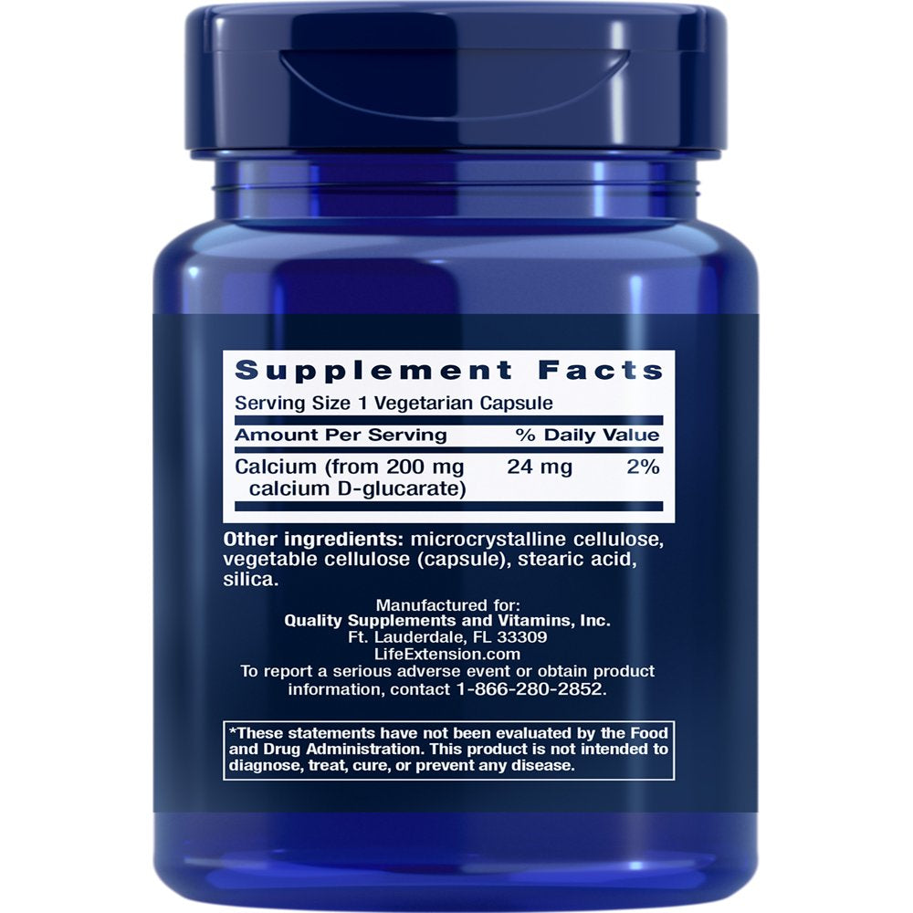 Life Extension Calcium D-Glucarate, 200 Mg - Supports Detoxification, Helps Flush Out Unwanted Compounds – Gluten-Free, Non-Gmo, Vegetarian – 60 Capsules