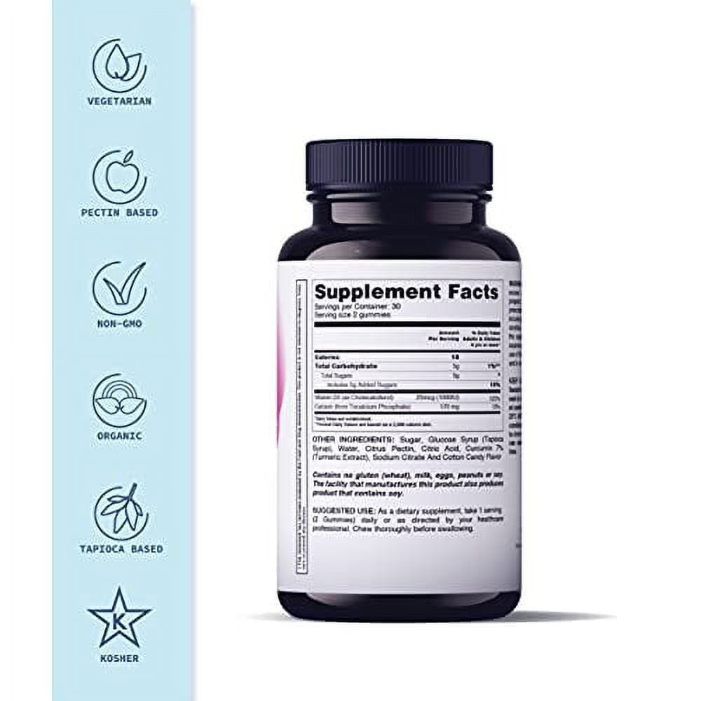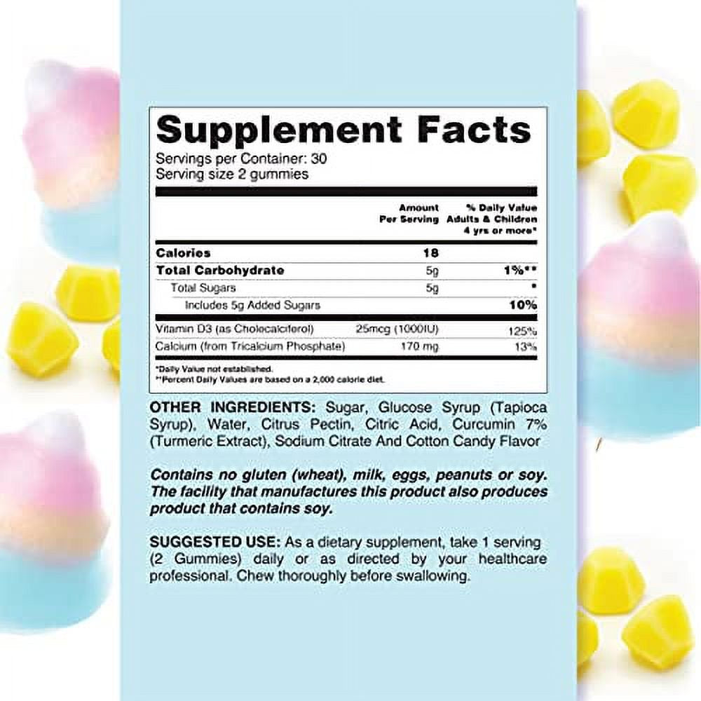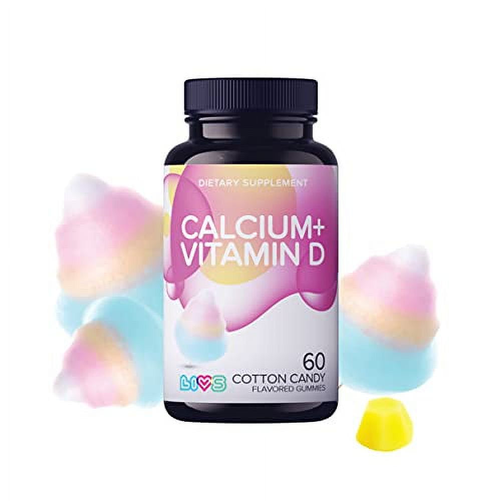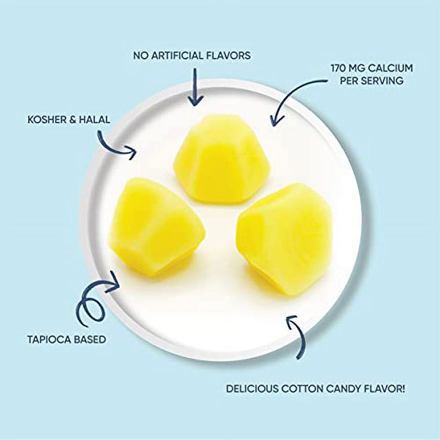 Calcium Gummies with Vitamin D3, Calcium Chews for Bone Health, Calcium Supplement with No Artificial Flavors, Cotton Candy Flavor, 60 Count