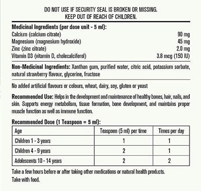 Supports children's bones, teeth, and immune system. A balanced, easily absorbed liquid formula that kids love.