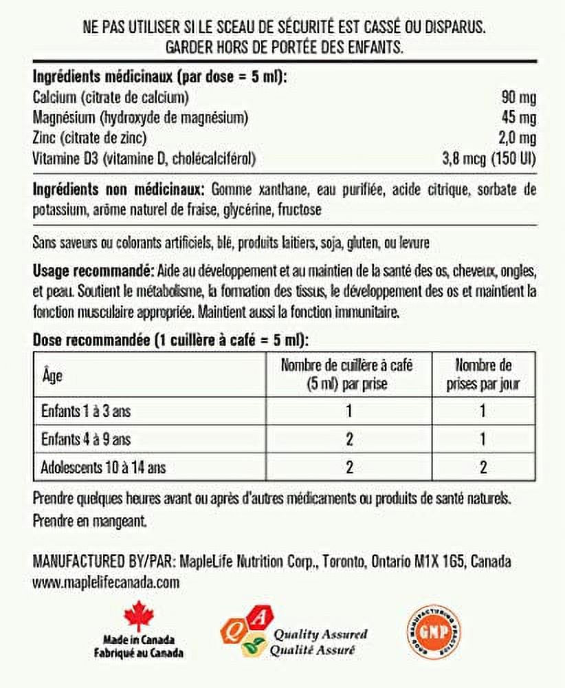 Maplelife Kids Calcium, Magnesium and Zinc + D Strawberry, 475 Ml