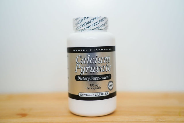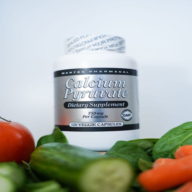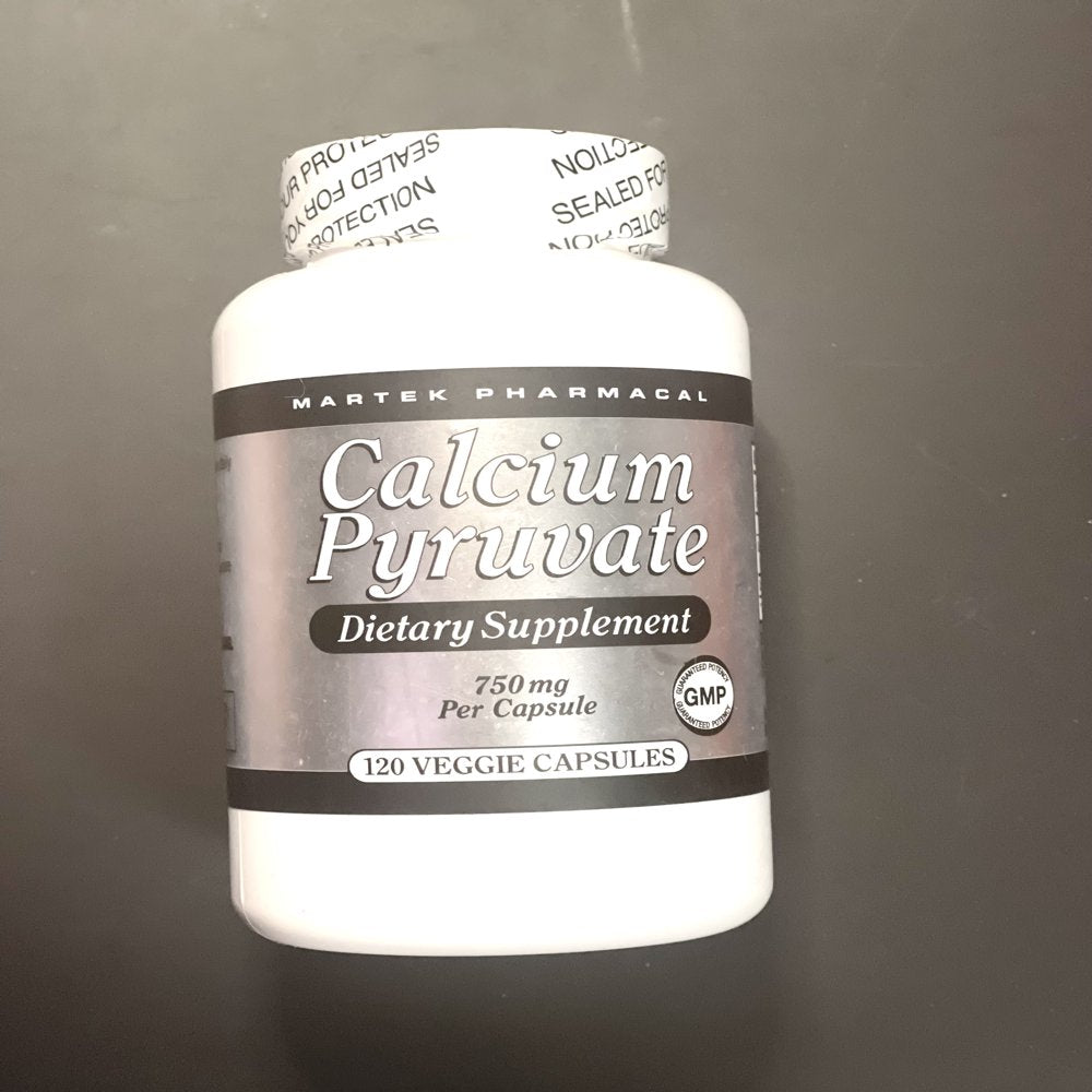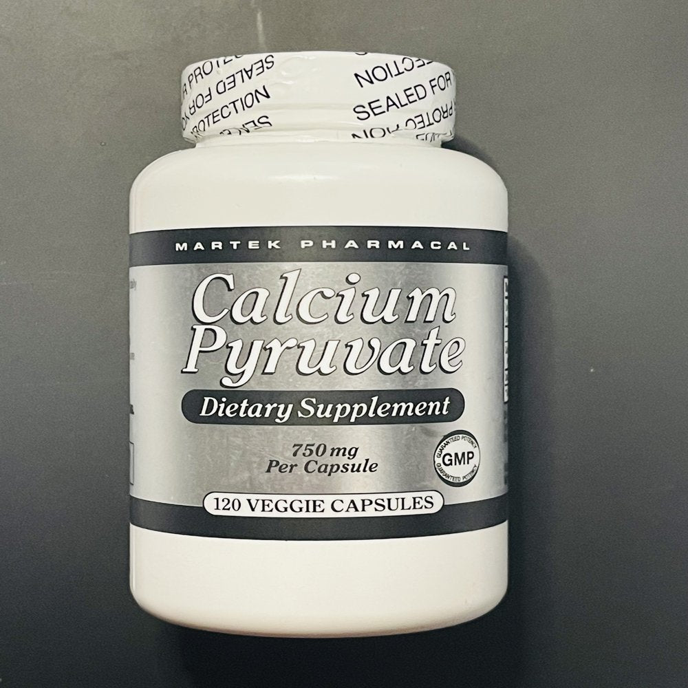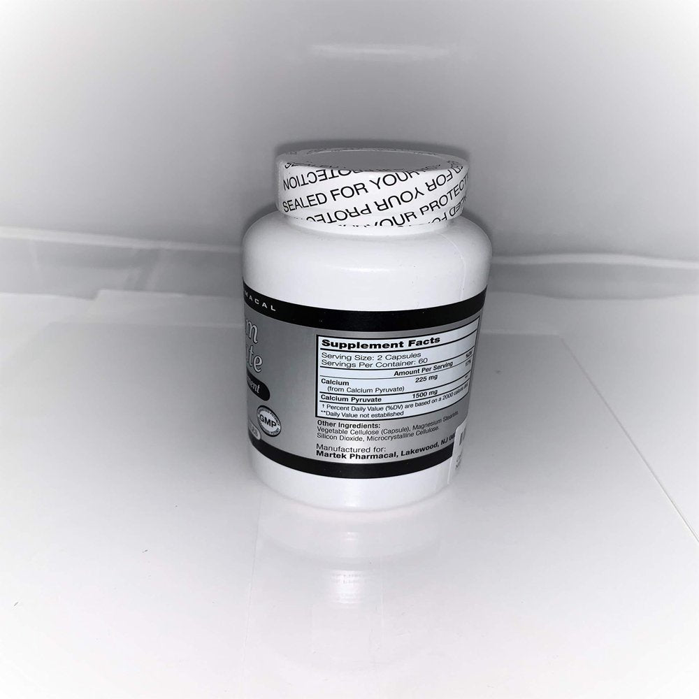 - Martek Pharmacal Brand Calcium Pyruvate Dietary Supplement 750 mg Veggie Capsules 120 Count, is a natural substance made in our bodies that contributes to metabolism and the digestion of carbohydrates. The unstable form of this substance, known as pyruvic acid, is stabilized by the addition of calcium.