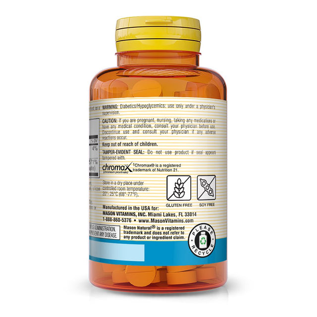 Mason Natural Chromium Picolinate 200 Mcg with Calcium - Healthy Fat Metabolism, 100 Tablets