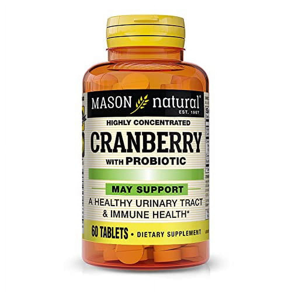 Mason Natural Cranberry with Probiotic, Calcium and Vitamin C, Highly Concentrated - Supports Antioxidant and Immune Health, Maintains a Healthy Urinary System, 60 Tablets