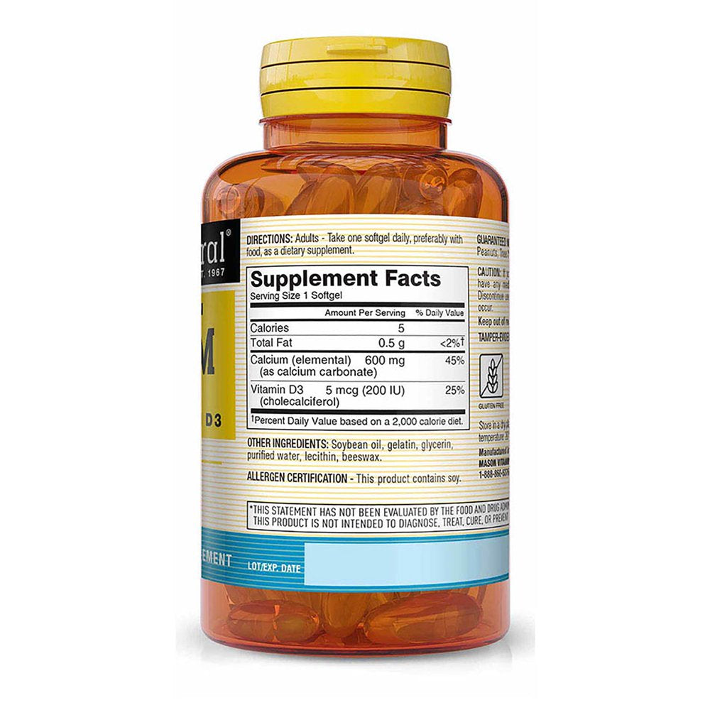 Mason Natural Fast Absorption Calcium with Vitamin D3 - Strengthens Muscle Function, Supports Healthy Bones and Overall Health, 60 Softgels